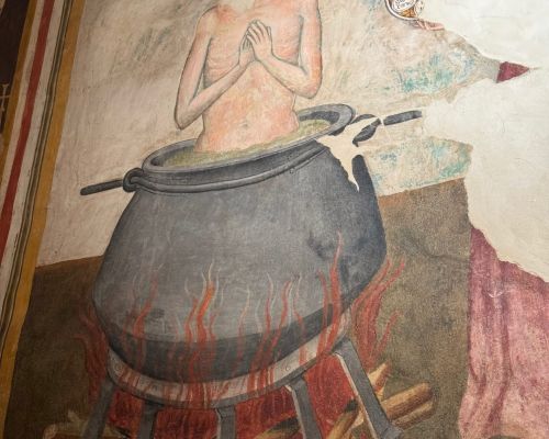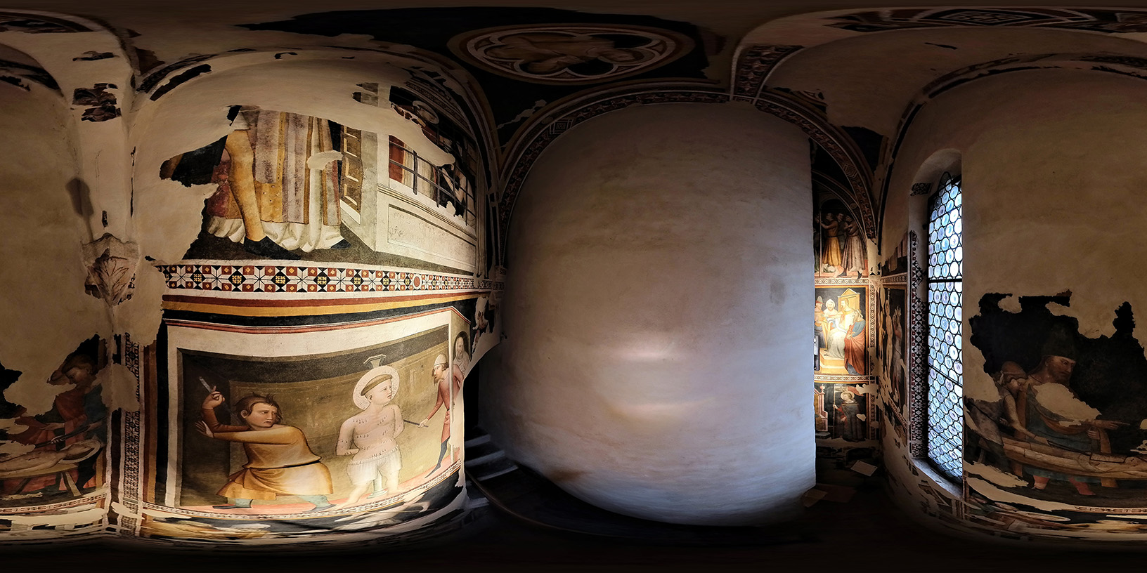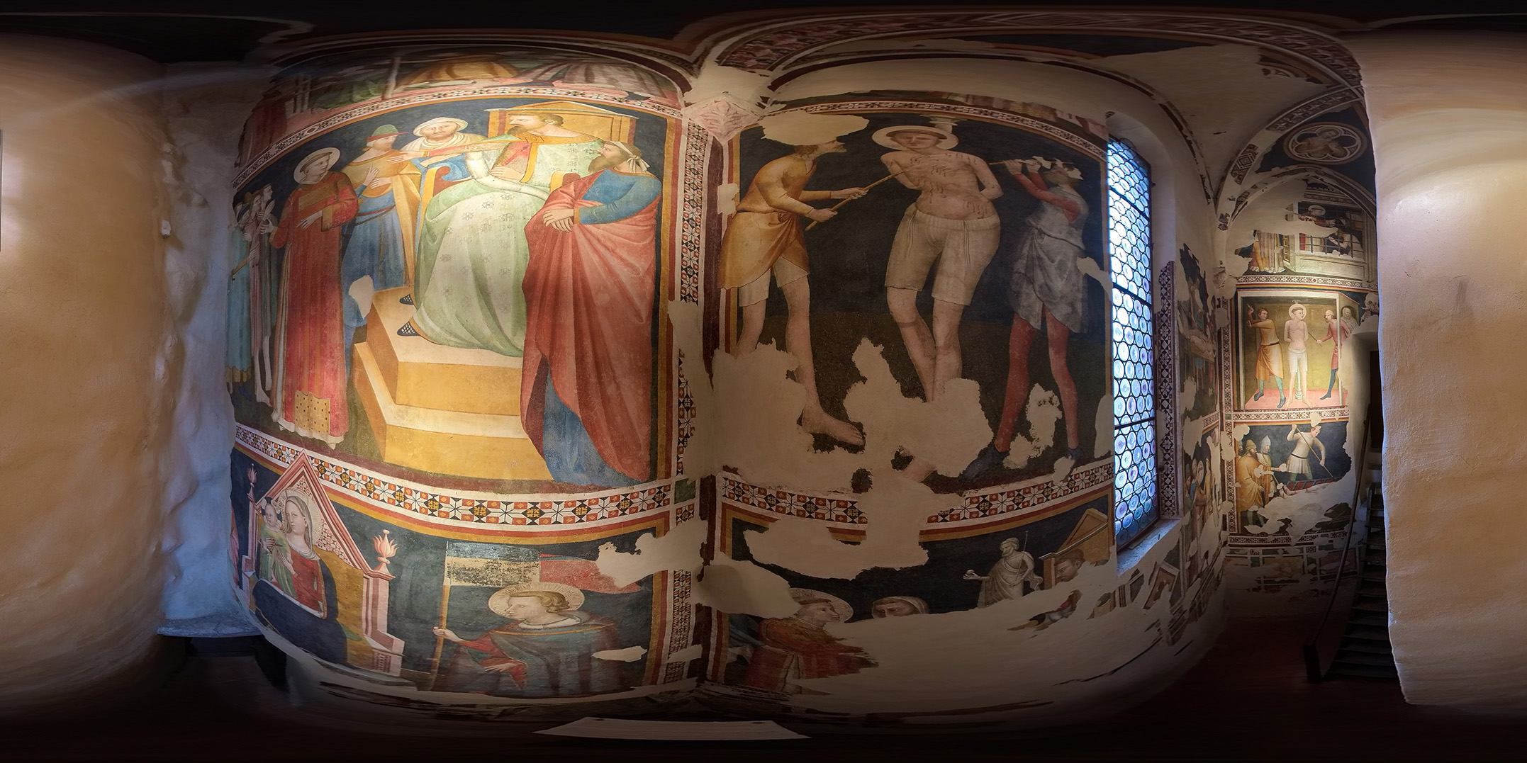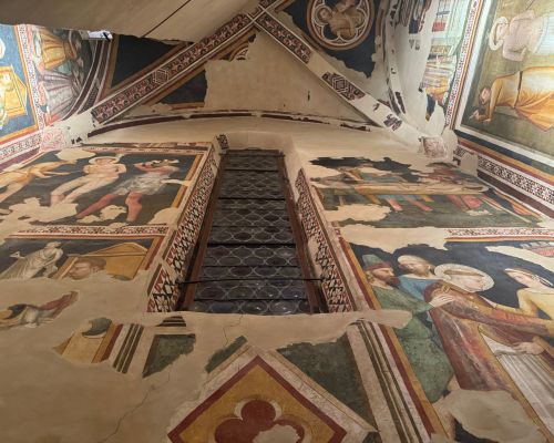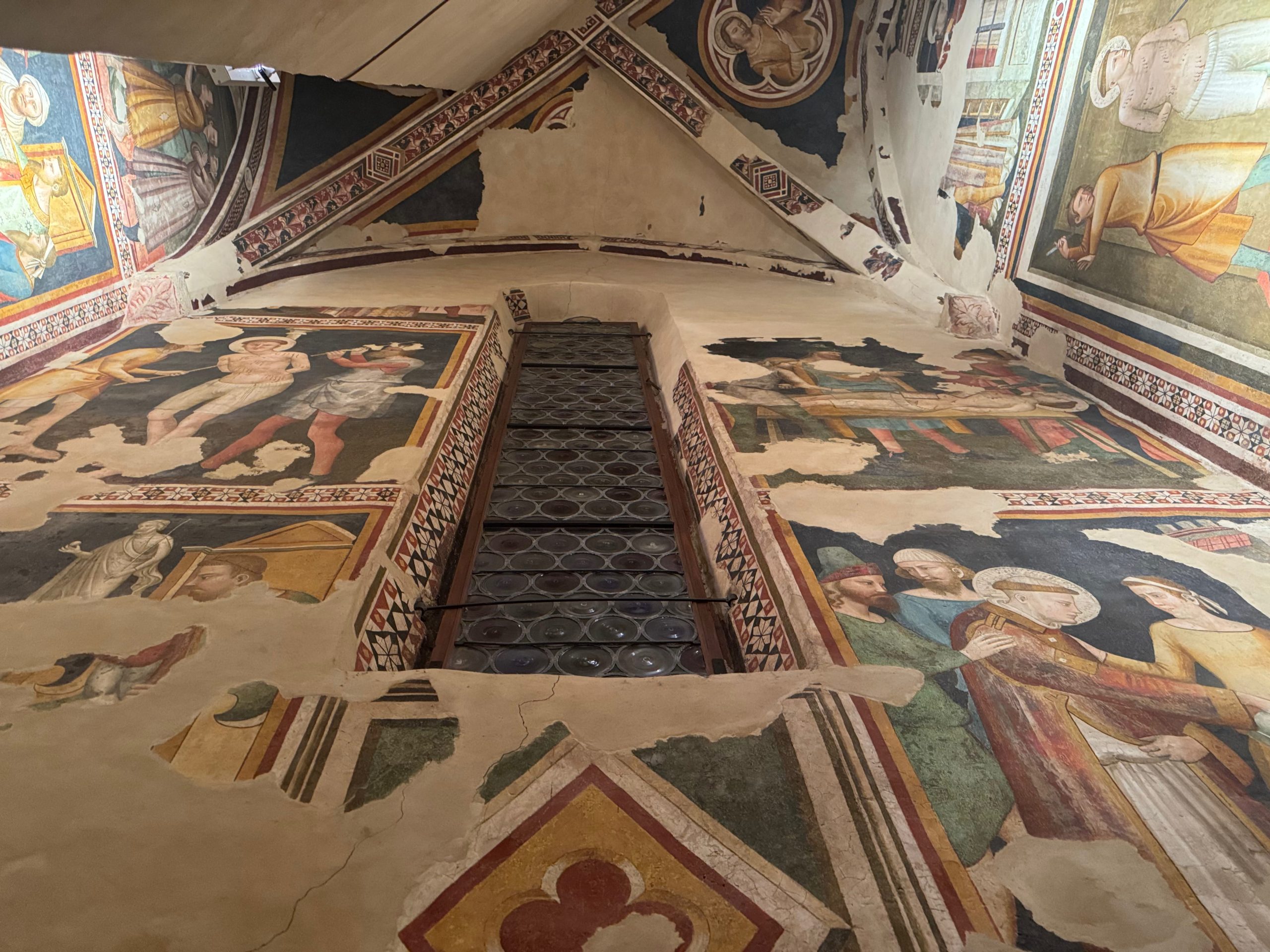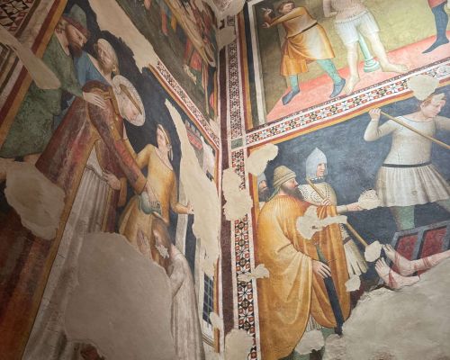 All’interno della Cattedrale di San Venanzio, gli affreschi non sono semplici elementi ornamentali: sono strumenti narrativi e didattici, pensati per accompagnare lo sguardo e raccontare storie sacre lungo le pareti e nelle cappelle laterali.Due cicli pittorici si distinguono per importanza e valore storico‑artistico: