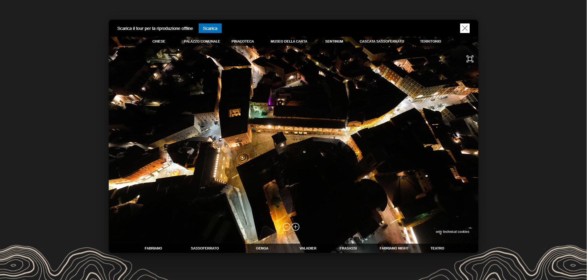 Il tour trasforma la visita in esperienza attiva. Dall’interno di un’abbazia romanica alla profondità delle Grotte di Frasassi, dal centro storico di Fabriano alle campagne di Sassoferrato. Ogni ambiente è navigabile, ogni punto osservabile da vicino e da lontano.